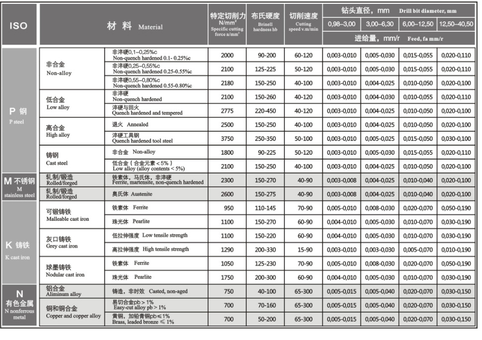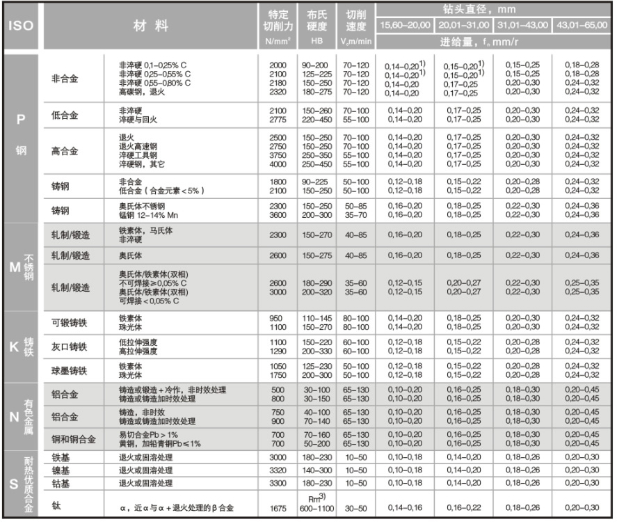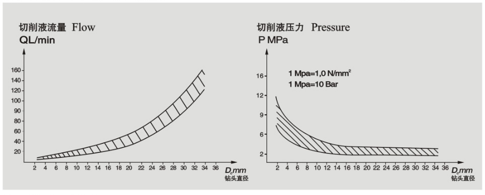 槍鉆機床的切削參數 槍鉆機床的冷卻液壓力和流量表 BTA深孔鉆床切削參數 BTA深孔鉆床的冷卻液壓力和流量表 GSM單刃槍鉆標準磨削角度 QYZ深孔鉆系統(tǒng)切削參數表