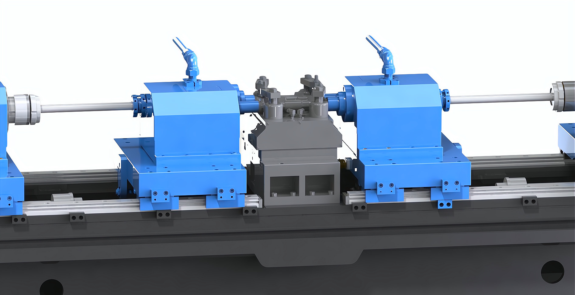 簡(jiǎn)要說明:機(jī)床采用臥式布局,兩支鉆桿對(duì)向錯(cuò)位設(shè)計(jì),中心距94mm(可定制),刀具采用BTA單管鉆。工裝放置在機(jī)床的中間位置,液壓旋轉(zhuǎn)壓板自動(dòng)夾緊。一次裝夾,可同時(shí)對(duì)向鉆削加工完成履帶板上的2-φ32mm深孔。加工效率極高。冷卻系統(tǒng)放置在主機(jī)后面,平行放置,結(jié)構(gòu)緊湊,占地面積?。?br />