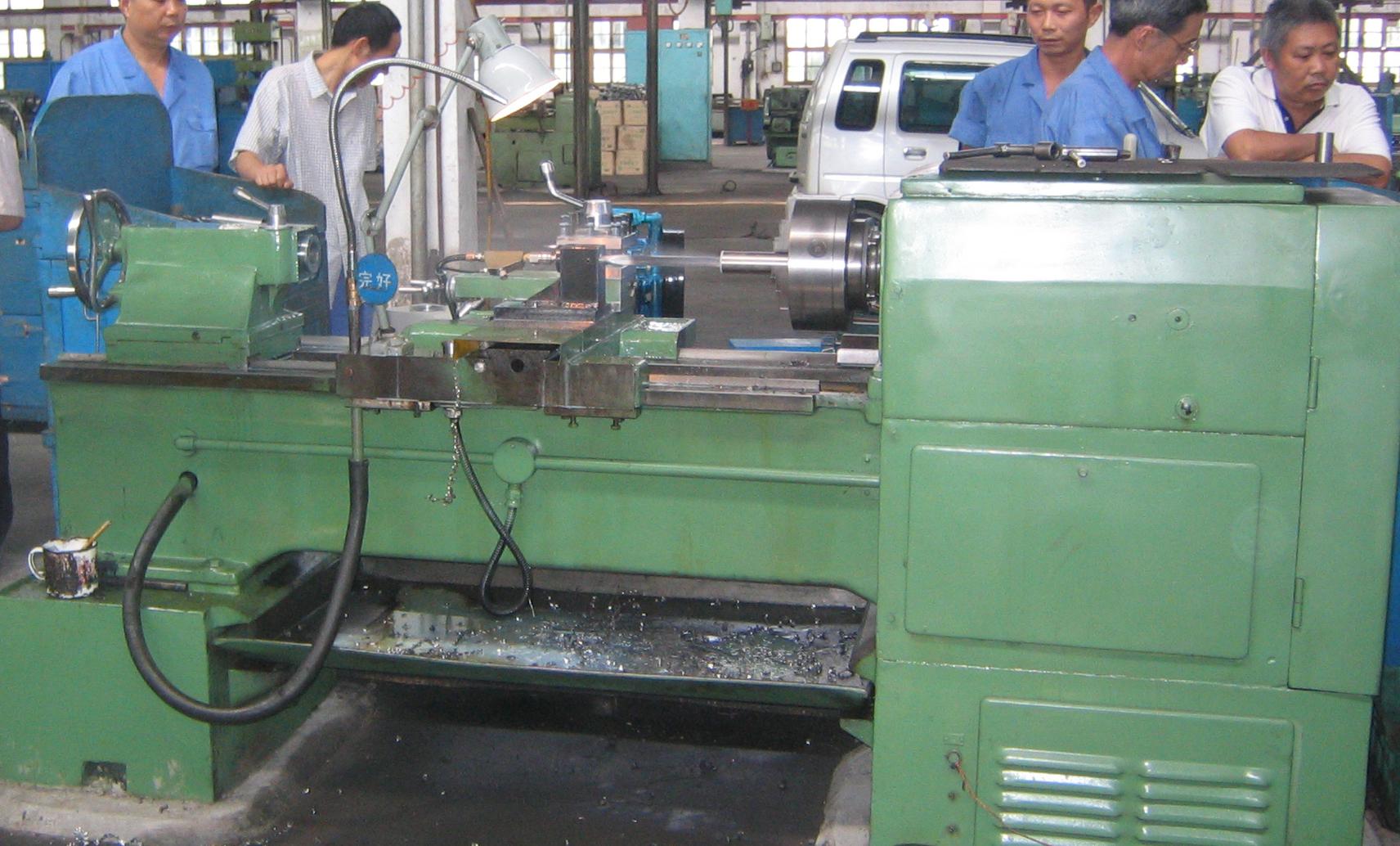 2. 固定刀夾的找正: 三爪卡盤(pán)上吸杠桿式百分表,搖動(dòng)托板找正固定刀夾后側(cè)面,使其與導(dǎo)軌運(yùn)動(dòng)方向平行度0.02mm/200mm,.在刀柄夾持孔中插入校正棒,回轉(zhuǎn)百分表校正棒,園周全跳動(dòng)0.02mm,然后剛性連接固定刀夾,重復(fù)上述檢查,并在機(jī)床上作對(duì)零標(biāo)記。