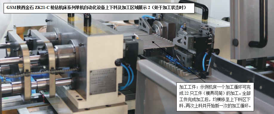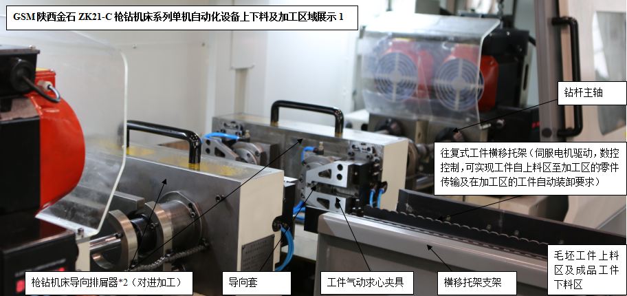 針對(duì)槍鉆加工領(lǐng)域特點(diǎn)和不同用戶的設(shè)備需求,陜西金石設(shè)計(jì)生產(chǎn)研發(fā)的ZK21-C槍鉆機(jī)床系列單機(jī)自動(dòng)化產(chǎn)品(人工低強(qiáng)度參與的上下料、自動(dòng)裝卸、自動(dòng)加工),可以使得用戶在應(yīng)對(duì)大批量軸類零件的精密深孔加工場(chǎng)合擁有了更多更好的選擇。