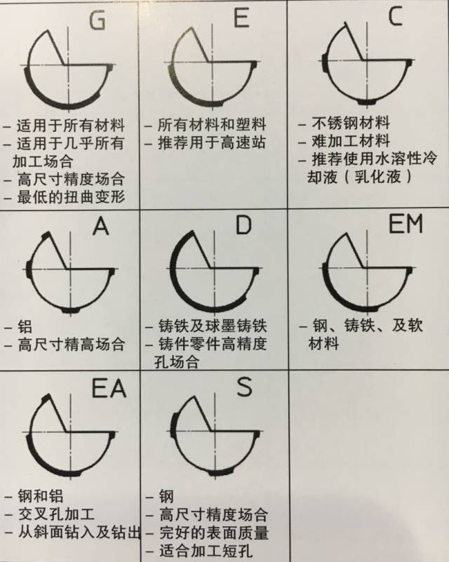 C形油隙:三點(diǎn)支撐。支撐面更小,并且,在三點(diǎn)支撐之間有儲油槽,可以使切削油充分的到達(dá)支撐面與孔壁之間,潤滑效果非常好,降低加工溫度,延長刀具使用壽命。
